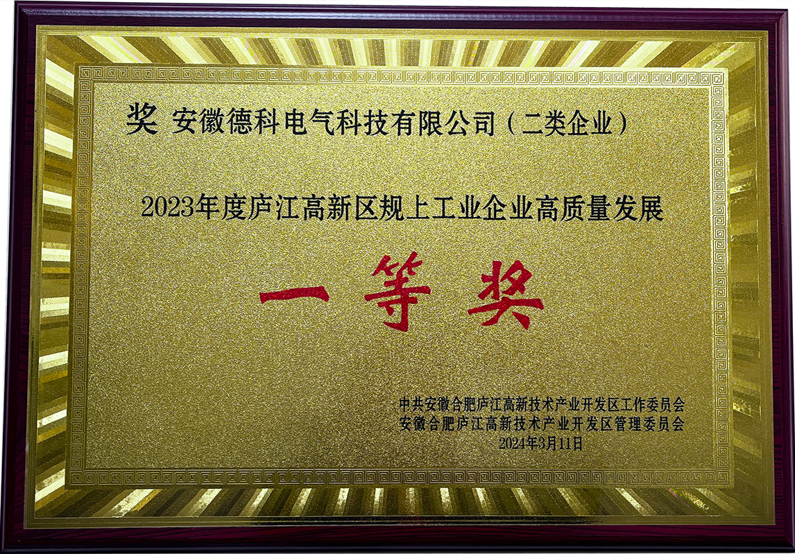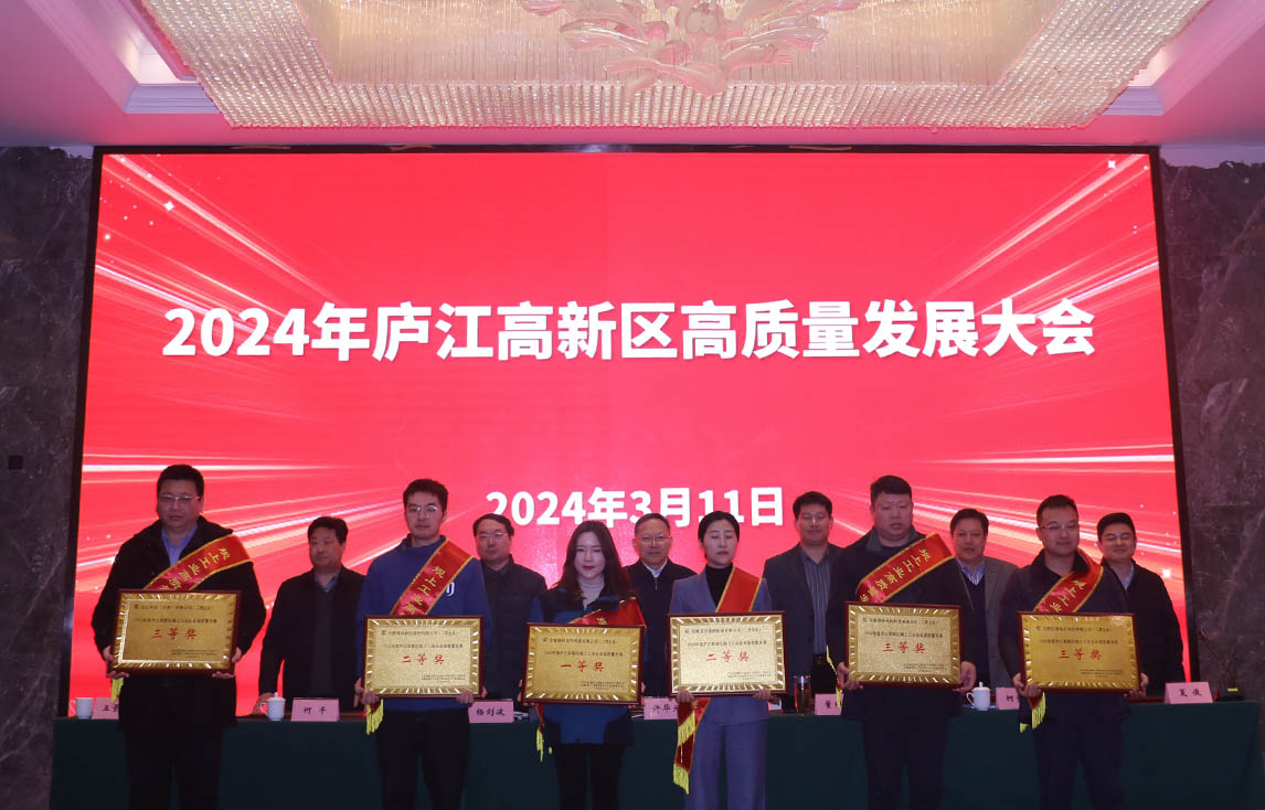 会上宣读了2023年度庐江高新区高质量发展相关奖项,米兰网web站电气荣获《2023年度庐江高新区规上工业企业高质量发展一等奖》。县领导为各获奖企业颁奖并表示祝贺,同时勉励企业2024年再创佳绩。