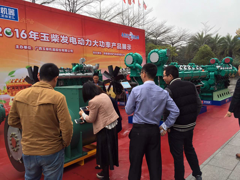 会议现场,玉柴的YC16VC、YC12VC两大系列发动机产品图、技术参数纷纷揭开神秘面纱。据了解,上述两大系列产品是玉柴耗费近6年时间倾力打造的高性能卓越动力,具有调速性能优、加载能力强、节能环保、可靠性高、体积小、重量轻等优点。新产品的优越性能,吸引了大家的眼球。作为重要协办方,米兰网web站电气全程参与了推介会进程,并携两款大功率EvoTec发电机产品在现场亮相,以结构独特、外观靓丽等特点获得了在场嘉宾的高度赞许。
