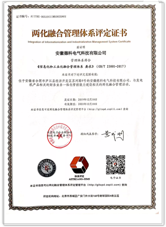 “两化融合”是工信部推行的国家战略,是信息化和工业化在技术、产品、服务、管理等各个层面的深度结合。作为提升企业核心竞争力的战略性工具,“两化融合”对推动公司的创新发展具有深远的意义。2019年,米兰网web站根据国家《信息化和工业化融合管理体系要求》(GB/T 23001-2017)标准,经过自主申报、体系运行、内部审核、管理评审、专家评审和复核公示等环节,于近日正式通过评定,取得了两化融合管理体系评定证书。